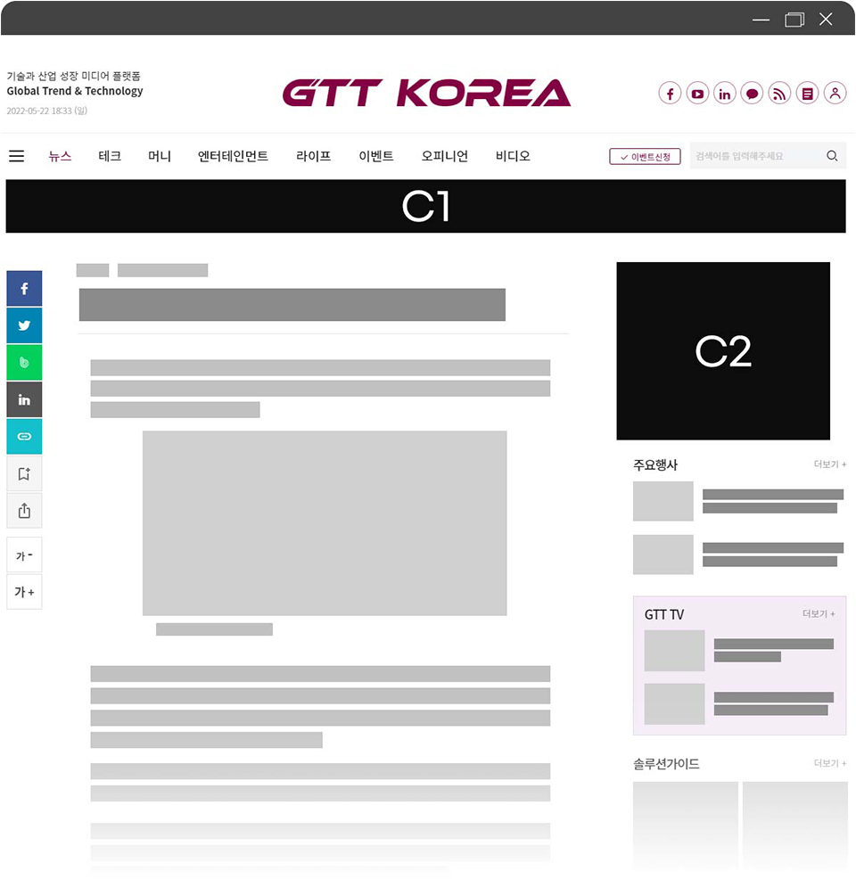 C2 : 우측 상단 박스 게재면 : 모든 기사 상세 페이지 사이즈 : 300X250 픽셀 가격 : 400만 원/월