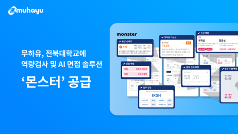 자연어를 이해하는 실용 AI 기술 기업 무하유(대표 신동호)가 전북대학교에 AI 역량검사 및 AI 면접 솔루션 '몬스터'를 공급했다고 29일 밝혔다.