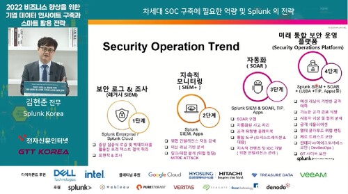스플렁크 코리아의 김현준 상무가 선제적인 위협 헌팅이 가능한 스플렁크 솔루션을 설명한다.