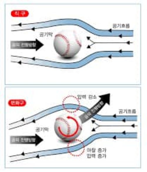 하지만 투수가 공을 던져 공이 날아갈 때 공기는 공의 표면을 타고 뒤쪽으로 흘러간다. 이때 공의 앞쪽은 공기의 저항에 부딪히고 뒤쪽에는 와류가 생기면서 공을 잡아끄는 소용돌이가 발생한다. 이런 규칙적인 흐름을 방해하는 것이 바로 공의 실밥이다.