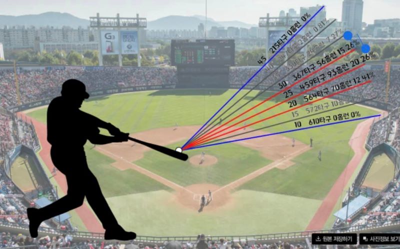 삼각함수에 의하면 45도 발사각의 비거리가 가장 멀고 마이너스 90도와 90도는 비거리가 제로다. 외야 장타나 홈런이 보물선을 그리며 날아가야 하는 이유이다. 하지만 45도 발사각을 내기 위한 타자의 스윙 자세는 힘을 많이 싣지 못해서 초기 속도가 낮아진다. 실제로 통계에 의하면 발사각이 25도일 때 홈런이 가장 많이 나온다고 한다.