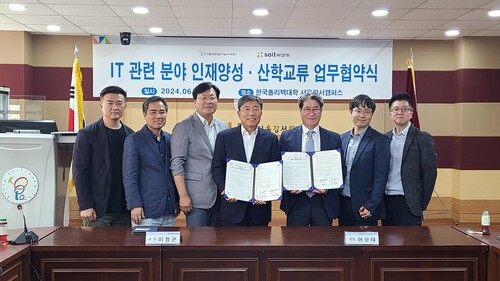 솔트웨어(대표 이정근)가 한국폴리텍대학 서울강서캠퍼스(학장 여상태, 이하 한국폴리텍)와 ‘IT 관련 인재양성 및 산학교류 업무협약’을 24일 체결했다고 밝혔다.