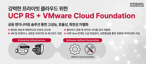 AI·데이터 인프라 솔루션 전문기업 효성인포메이션시스템(대표 양정규)이 클라우드 인프라 현대화, 운영 효율성 향상, 기업의 지속가능성을 지원하기 위해 프라이빗 클라우드 플랫폼 ‘UCP(Unified Compute Platform) RS’와 VMware 클라우드 파운데이션(VCF)을 결합한 프라이빗 클라우드 솔루션을 제공한다고 11일 밝혔다.