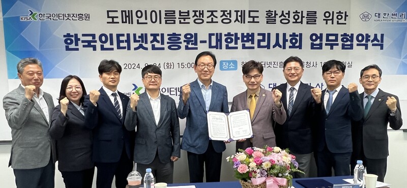 한국인터넷진흥원(원장 이상중, 이하 KISA)과 대한변리사회(회장 김두규)가 국내외 ‘도메인이름분쟁조정제도’ 홍보 및 변리사의 분쟁조정 전문성을 강화하고자 협력한다고 24일 밝혔다.