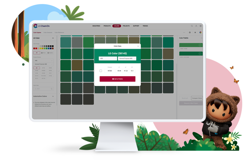 고객은 채널만 달라졌을 뿐, LG화학 직원이 직접 색상을 확인하고 제품을 추천해 주는 것과 같은 서비스를 온라인에서도 똑같이 지원받는 셈이다. 세일즈포스와 협업해 구축한 디지털 플랫폼은 제품 및 견본 문의, 기술자료 문의 등 실시간 상담을 지원한다. 화학 제품을 구매할 수 있는 ‘온라인 쇼핑몰’ 사용하듯 편리한 이용이 가능하다.