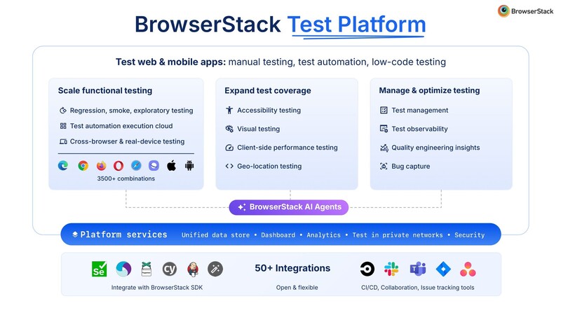 글로벌 소프트웨어 테스트 플랫폼 기업 브라우저스택(BrowserStack)이 AI 기반 통합 테스트 플랫폼을 출시했다고 밝혔다.
