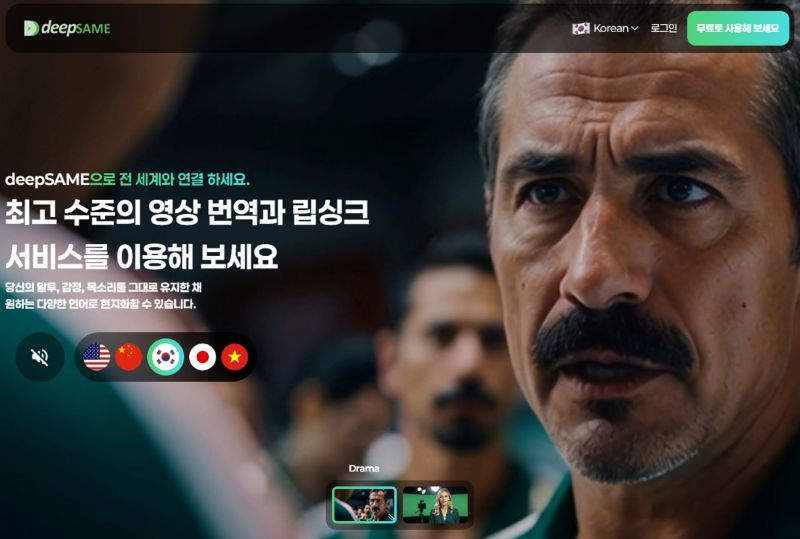 딥세임은 영상 속 화자의 음성과 배경음을 자동 분리한 뒤, 화자의 어조와 음색을 복제해 실시간으로 다국어 AI 더빙을 수행한다. 이후 해당 언어에 맞는 입 모양으로 립싱크 처리까지 진행되어, 사용자에게 감정과 분위기가 그대로 전달되는 자연스러운 영상 콘텐츠를 제공한다. 한국어, 영어, 일본어, 중국어, 베트남어를 포함해 총 33개 언어를 지원하며, 글로벌 콘텐츠 제작 환경에서 유연하게 적용 가능하다.