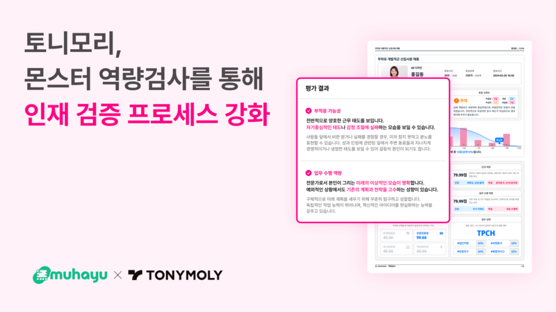 AI 기업 무하유(대표 신동호)가 뷰티 브랜드 토니모리에 대화형 AI 역량검사·면접 서비스 ‘몬스터’를 공급했다고 3일 밝혔다.