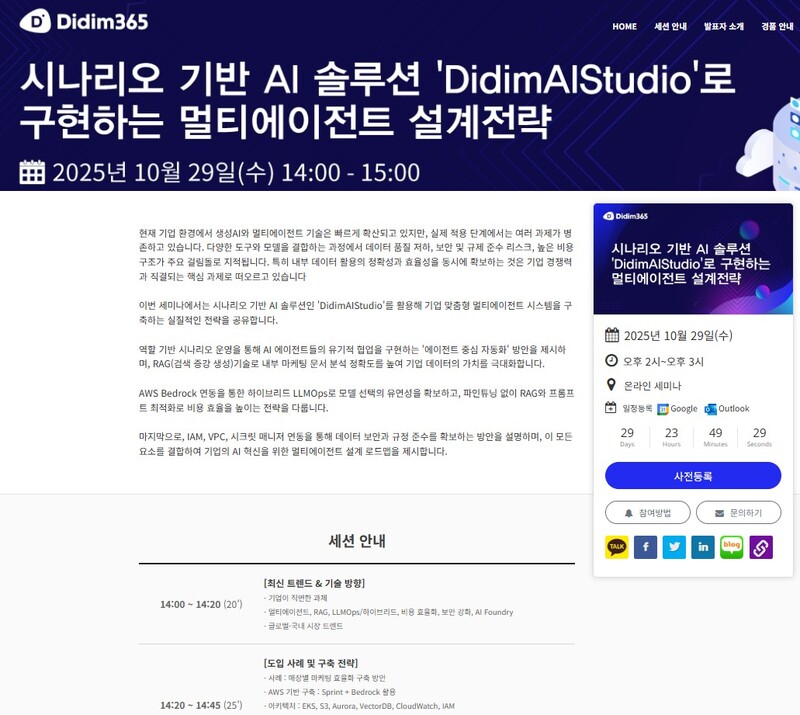 이번 웨비나는 기업 맞춤형 멀티에이전트 시스템 구축 방안을 공유하고, 최신 AI 운영 과제를 해결하기 위한 접근법을 제시한다.