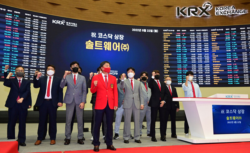 클라우드 관리 서비스 기업인 솔트웨어가 한국거래소(KRX)에서 코스닥 신규 상장 기념식을 22일 개최했다.