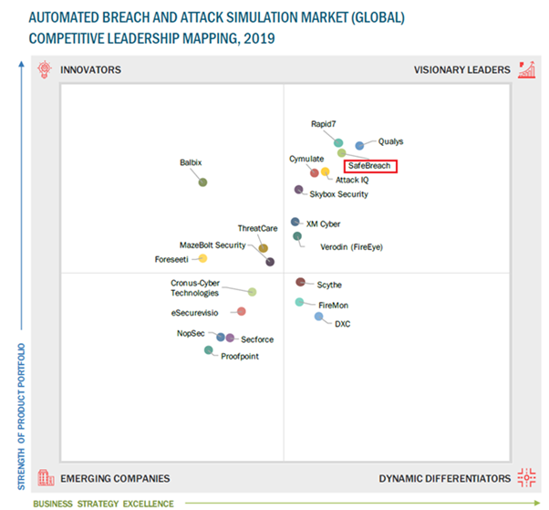 또한 세이프브리치의 BAS 플랫폼은 자동화된 공격 기술을 응용한 글로벌 BAS 영역에서 가장 높은 시장 위치에 있는 제품으로 평가되고 있다. 고객에게 실전에서 사용하는 최신 공격(Threat Group 등) 시뮬레이션 전술 소개 자료인 플레이북(Playbook)이 주 단위로 업데이트돼 제공되며, BAS 업계 최대의 공격 전술 시나리오 유형 2만 5,000여 개를 이용해 고객이 공격받기 전에 시스템 안전을 검증할 수 있도록 정보유출, 내부 침투, 내부망 전이공격, APT 등의 공격 시뮬레이션을 수행할 수 있다. 세이프브리치의 BAS를 통해 실제 공격 발생 시 피해 사전 차단이나 규모 최소화가 가능하고 앞으로 보안 강화를 위해서 해야 할 일, 투자해야 할 사항을 정확하게 파악할 수 있다.