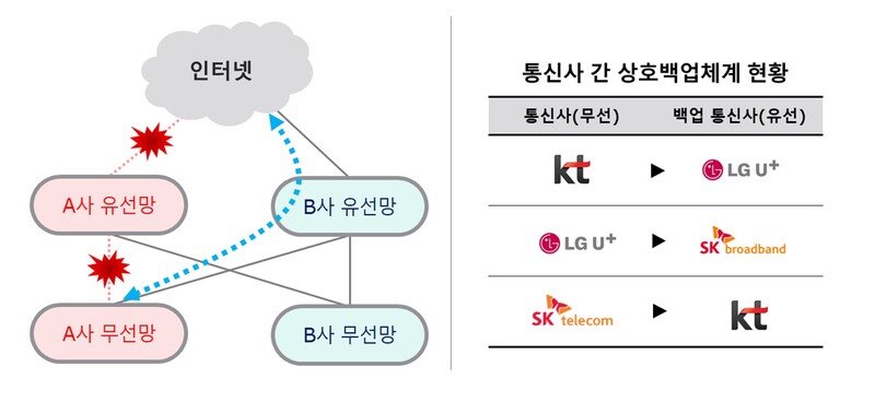 타 통신사 유선망 통한 무선망 상호 백업체계