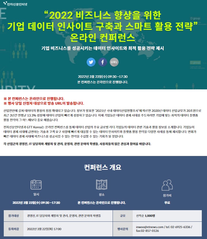 변화가 빠른 데이터 경제 시대에 비즈니스를 성공시킬 수 있는 전략을 수립할 수 있는 기회가 될 것이다.