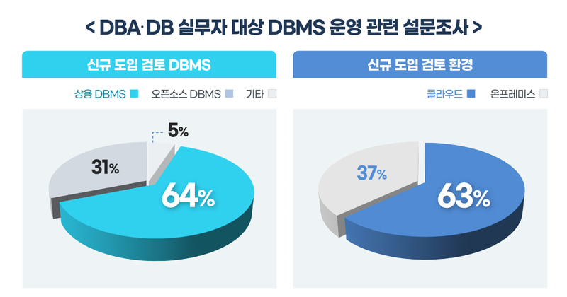 티맥스티베로는 약 341명의 DBA∙DB 실무자에게 신규 도입을 원하는 DBMS 제품과 운영 환경에 대해 설문조사를 진행했다. 이 중 64%가 티베로, 오라클 등 상용 DBMS 도입을 검토한다고 답변했으며, 31%가 포스트그레SQL, 마리아DB 등 오픈소스 제품 도입을 고려하고 있다고 밝혔다. 이외에 5%는 오픈소스와 상용 제품의 혼합 등 기타 형태를 원한다고 답했다.