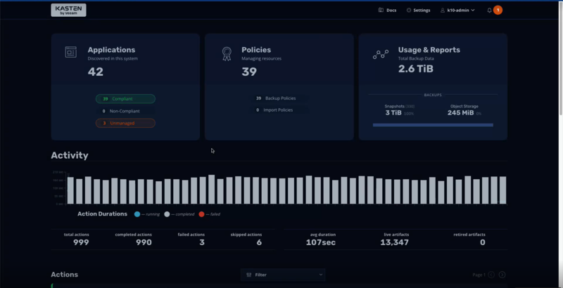 확장된 클라우드 네이티브 생태계는 고객이 증가하는 워크로드 유형, 지리적 영역, 스토리지 유형, 보안 전반에 걸쳐 최신 기술을 활용할 수 있도록 보장한다. 카스텐 K10은 이제 레드햇오픈시프트(Red Hat OpenShift)에서 VM과 컨테이너 워크로드를 나란히 실행하고 관리할 수 있는 레드햇오픈시프트 맞춤 가상화를 지원한다. 또한 카스텐 K10은 OCP 4.10, 쿠버네티스 1.23, 애저 파일, 애저 매니지드 아이덴티티를 지원한다.