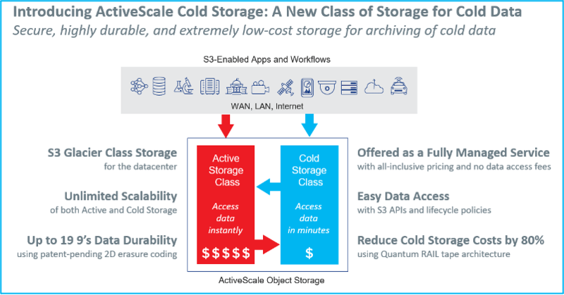 테이프 스토리지와 연계돼 구현되는 액티브 콜드 스토리지는 디스크 스토리지만으로 구현되는 범용 오브젝트 스토리지 대비 뛰어난 가격 경쟁력을 제공할 수 있어서 콜드 데이터에 최적화된 스토리지 아키텍처로 평가되고 있다.