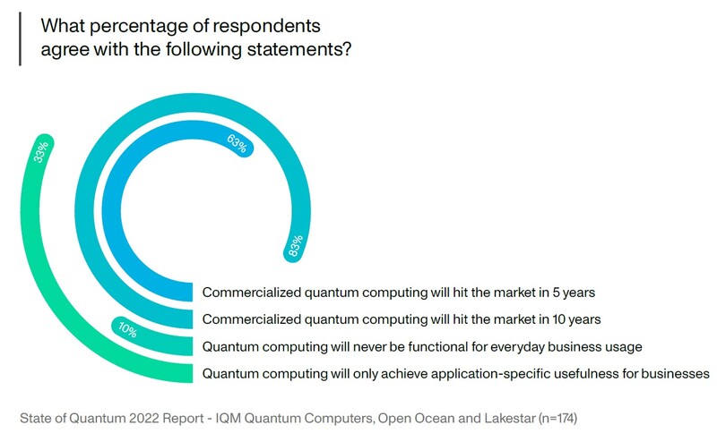 기업 리더의 61%는 양자 컴퓨팅을 실행하는 하드웨어 비용이 현재 지속 가능하지 않다고 답했으며, 기업의 10%만이 양자 컴퓨팅이 일상에서 활용될 것이라는 점에 주의를 기울이고 있다.