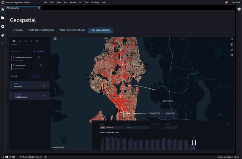 이제 아마존 세이지메이커는 고객이 데이터 세트를 보강하고, 지리공간 모델을 훈련하고, 몇 달이 아닌 몇 시간 만에 결과를 시각화할 수 있도록 지원해, 지리공간 ML 예측 생성을 가속화하고 단순화한다. 고객은 몇 번의 클릭, 또는 API를 사용해, 아마존 세이지메이커를 통해 AWS(예: 아마존 로케이션 서비스), 신뢰할 수 있는 서드파티 공급자(예: 플래닛 랩스), 오픈소스 데이터 세트(예: 아마존 오픈 데이터)의 다양한 지리공간 데이터 소스에 액세스할 수 있다.