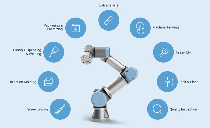 작고 가벼운 무게는 어디에라도 설치할 수 있으며, 심지어 고정설치가 아닌 이동형으로도 사용할 수 있으며, 볼트 4갬만으로 마운트가 가능할 뿐 아니라 산업용 로봇처럼 작업자와 격리하기 위한 펜스나 조작을 위한 별도의 컨트롤 패널이 필요없다. 또한 로봇의 프로그래밍과 유지보수를 위한 별도의 전문가가 필요없다.