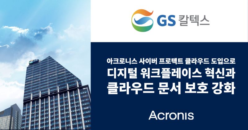 통합 사이버 보호 선두기업 아크로니스(지사장 고목동)는 14일 에너지 전문기업 GS칼텍스(대표 허세홍)가 클라우드 기반 업무 문서 통합 관리를 위한 ‘M365 개선 프로젝트’ 수행과 함께 문서의 안전한 관리를 위해 아크로니스 통합 사이버 보호 솔루션 '아크로니스 사이버 프로텍트 클라우드(Acronis Cyber Protect Cloud)'를 도입했다고 밝혔다.