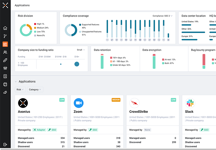 SaaS 앱과 디바이스 상관 관계 분석(SaaS App-to-Device Correlation) 기능은 관리되지 않고 승인되지 않은 장치가 다양한 SaaS 앱에 액세스하는 데 사용되고 있는지 이해하는 데 도움이 된다. 엑소니어스 SaaS 관리(Axonius SaaS Management) 솔루션은 엑소니어스 사이버보안 자산 관리(Axonius Cybersecurity Asset Management) 솔루션과 기술 스택 전반에 걸친 수백 개의 어댑터를 함께 사용해, 각 SaaS 사용자를 관련 장치에 자동으로 연결하고 조직의 보안 상태에 대한 보다 포괄적인 ‘뷰’를 제공한다. 조직은 이제 SaaS 앱에 액세스하는 관리되지 않거나 승인되지 않은 장치에 대한 가시성을 확보하고 데이터 손실 위험을 줄일 수 있다.