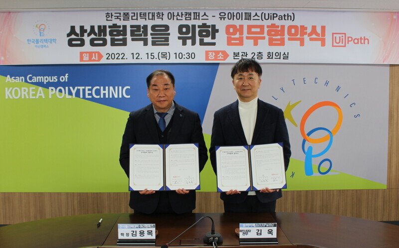 이에 자동화 소프트웨어 기업 유아이패스(UiPath)가 자동화 소프트웨어 확산과 인재 양성을 위해 한국폴리텍대학 아산캠퍼스(이하 아산폴리텍대학)과 지난 15일 업무협약을 체결했다.