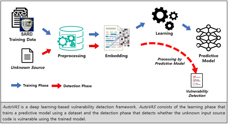케이사인이 기술이전을 받게 될 AutoVAS(An automated vulnerability analysis system with a deep learning approach) 시스템은 고려대학교 김휘강 교수 연구팀(해킹대응기술연구실)이 고안한 것으로 보안상 취약한 소프트웨어의 예시코드가 담겨있는 SARD(Software Assurance Reference Dataset)를 이용해 딥러닝으로 학습하고, 프로그래밍 언어의 소스코드에 존재하는 취약점을 자동으로 찾아주는 기술이다.