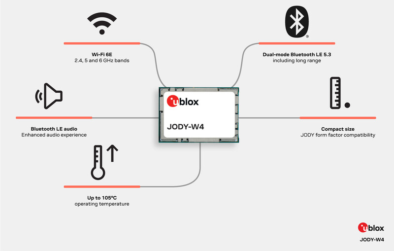 위치추적 및 무선 통신 기술 기업인 유블럭스(u-blox)는 Wi-Fi 6E 기술과 BLE 오디오 기능을 결합한 차량용 모듈 제품인 '유블럭스 JODY-W4' 시리즈를 출시한다고 밝혔다.