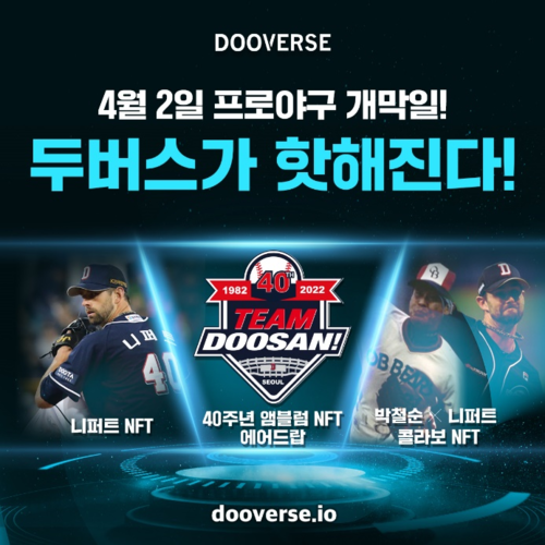 오전 10시에는 개막전 시구자로 나서는 박철순과 니퍼트를 콜라보 한 NFT 카드를 공개하며, 낮 12시부터는 두산베어스 창단 40주년을 기념하는 NFT 카드를 한정 수량으로 무료 제공하는 에어드랍 이벤트를 진행한다.