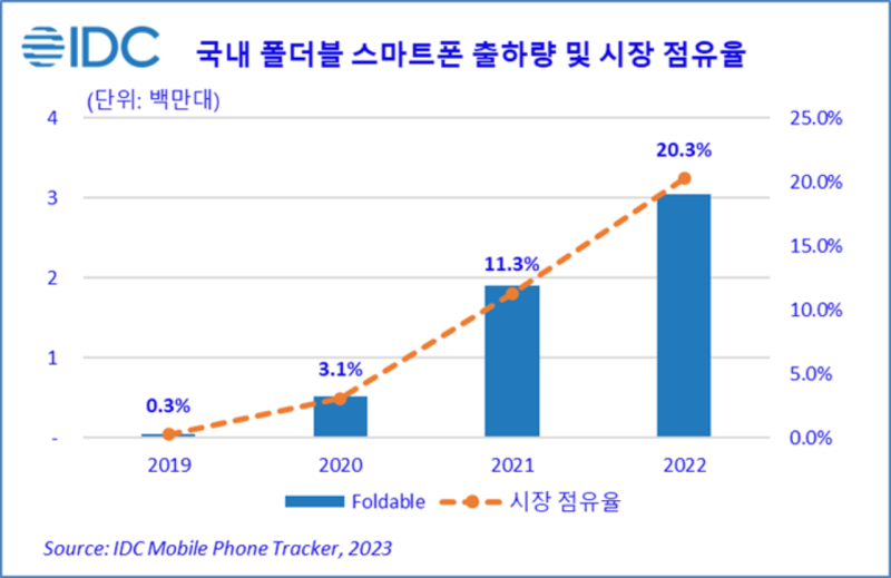 또한 2022년 하반기 국내 폴더블 스마트폰 시장 점유율은 전년 동기 대비 8.8%p 증가한 30.1%를 기록하며 큰 폭으로 성장했다. 특히 삼성전자의 폴더블 시리즈인 갤럭시Z 폴드 4 와 플립 4가 안정적인 제조와 원활한 공급을 바탕으로 유니크한 디자인과 개인화 된 경험을 선사하며 소비자 수요를 이끌어 낸 것으로 분석됐다. 이런 시장 점유율 부문 약진은 국내 폴더블 시장이 틈새 시장에 불과하다는 기존 인식에서 탈피하는데 기여한 것으로 나타났다.