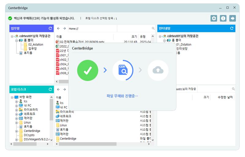 틸론의 ‘CenterBridge’는 자사의 데스크톱 가상화 솔루션 ‘Dstation’의 핵심 기능 중 하나인 자료 연계 기능(Station)과 결합돼, 도입과 운영관리가 간편하다. 특히 사용자의 가상데스크톱에 외부 반출을 위한 협업 폴더를 생성하고 조직도나 권한을 매핑해 읽기/쓰기/배포 정책을 설정할 수 있다는 장점을 갖고 있다. 또한 업무망, 인터넷망, 로컬디스크 통합관리 UI로 직관적이고 편리한 사용자 경험을 제공한다.