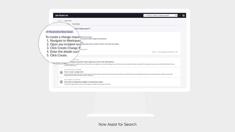 서비스나우 생성AI 컨트롤러(ServiceNow Generative AI Controller)는 조직이 서비스나우 인스턴스를 오픈AI(OpenAI)나 마이크로소프트 애저 오픈 AI(Microsoft Azure OpenAI)에 쉽게 연결할 수 있도록 지원하며, 검색용 나우 어시스트(Now Assist for Search)는 포털 검색이나 넥스트 익스피리언스(Next Experience) 또는 가상 상담원에 생성AI의 기능을 결합한다.