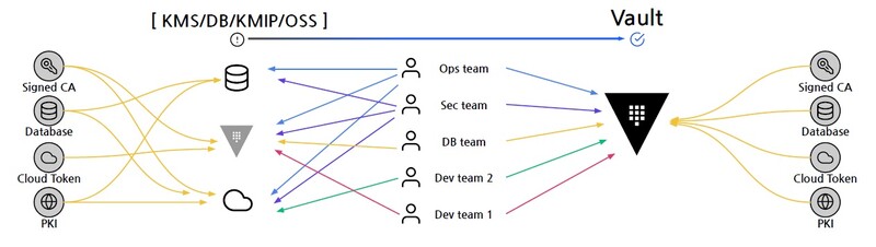 중앙 집중화된 볼트를 통해 시크릿을 보호하고, 시크릿 스프롤을 제거하면서, 누가 무엇에, 언제 액세스했는지 등을 적절히 관리하기 위해 시크릿을 중앙 집중화한다. 적절한 액세스를 제어할 수 있다면 개발이나 운영, 보안 팀은 보안 태세를 강화하는 동시에 애플리케이션과 민감한 데이터를 보호할 수 있다.