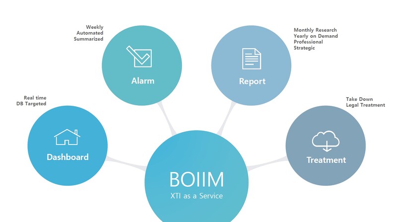 ‘BOIIM’은 CTI(Cyber Threat Intelligence)와 OSINT(Open Source Intelligence), ASM(Attack Surface Mangement)와 외부 위협 정보 관리 기능 등 4가지 요소로 구성돼 있으며, 각각 ‘APT와 사이버범죄 해킹 그룹 분석 사이버위협 인텔리전스’인 ‘ThreatRecon’, Deep/DarkWeb 노출과 유출 정보 조사, 프로파일링 전문 인텔리전스인 ‘DarkTracer’, 공격표면관리인 ‘XTI-ASM’, 고객 맞춤형 외부 위협 정보 관리인 ‘deep.insight’ 등을 통해 서비스를 제공한다.