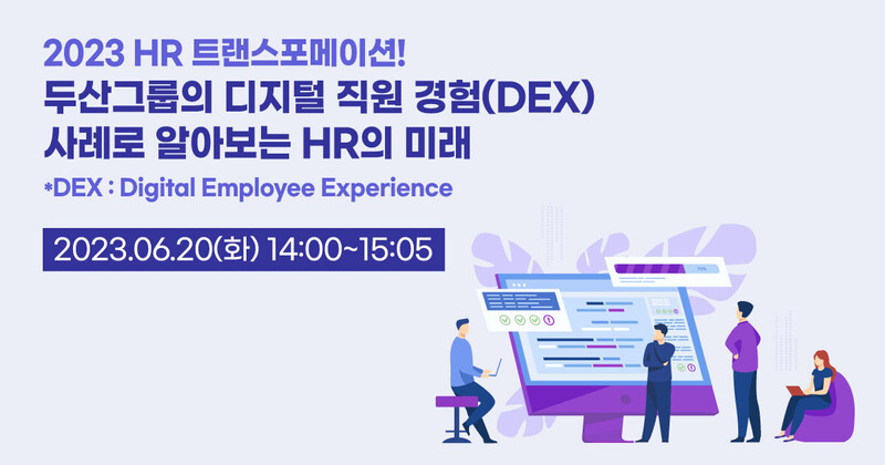 이런 직원경험 향상을 추진하고 있는 기업들에게 두산디지털이노베이션(이하 DDI)이 오는 20일 ‘2023 HR 트랜스포메이션! 두산그룹의 디지털 직원경험 사례로 알아보는 HR의 미래’를 주제로 웨비나를 개최, 기업 HR 담당자들을 대상으로 HR 디지털 혁신 경험과 노하우를 공유한다.