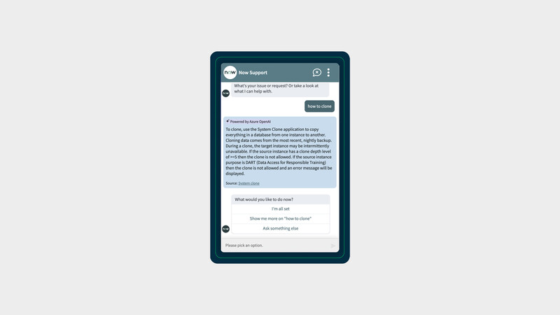 버추얼 에이전트용 나우 어시스트는 생성AI를 사용해 질문에 보다 직접적이고 관련성 높은 대화형 답변을 제공해, 사용자가 버추얼 에이전트용 나우 어시스트에 질문을 하면 대화 중에 생성형 AI를 사용해 제품과 엔지니어링 팀을 위한 내부 코드, 제품 이미지 또는 비디오, 문서 링크, 관련 지식 문서의 요약 등 사용자가 필요한 정보를 즉시 얻을 수 있도록 직관적인 답변을 제공한다. 서비스나우는 여러 부서와 시스템에 걸쳐 작동하기 때문에 사용자가 누구에게 문의해야 할지, 어디서부터 시작해야 할지 모르는 경우에도 버추얼 에이전트용 나우 어시스트를 통해 정확하게 소통할 수 있어 생산성을 높이고 자체 해결율을 높이며 문제를 더 빠르게 해결할 수 있다.