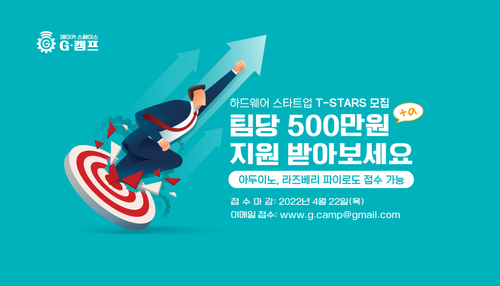 서울시와 서울시 일자리 창출의 주역인 중소기업지원기관 SBA(서울산업진흥원, 대표이사 김현우)가 운영하는 메이커스페이스 전문랩 G·CAMP(지캠프)는 2022년도 하드웨어 스타트업 엑셀러레이팅 프로그램 ‘T-STARS'(티스타즈) 지원팀 모집을 실시한다고 밝혔다.