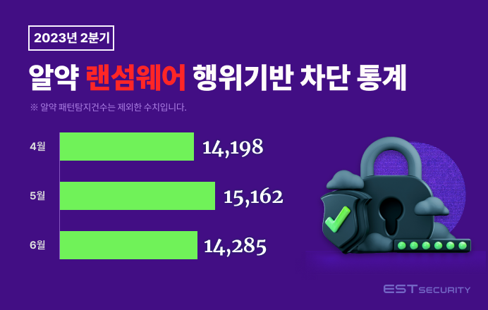 보안 전문 기업 이스트시큐리티는 2023년 2분기 자사 백신 프로그램 ‘알약’에 탑재된 ‘랜섬웨어 행위기반 사전 차단’ 기능을 통해 총 4만 3645건의 랜섬웨어 공격을 차단했다고 5일 밝혔다.
