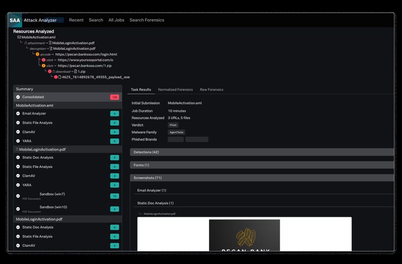 스플렁크 통합 보안 운영 서비스에 추가된 스플렁크 어택 애널라이저(Splunk Attack Analyzer, 구 트윈웨이브)는 보안팀에게 악성 소프트웨어와 크리덴셜 피싱 공격 분석 자동화 기능을 제공해 공격자가 탐지를 면하기 위해 사용하는 복잡한 공격 기법을 확인할 수 있게 해 준다. 또한, 스플렁크 어택 애널라이저는 스플렁크 자동화와 오케스트레이션(Splunk SOAR) 기능과의 통합을 통해 보안 분석가가 자동화된 위협 포렌식을 진행할 수 있도록 지원한다. 조직은 이를 통해 정확하고 신속하게 위협을 탐지할 수 있으며 수동 조사에 소요되는 시간과 자원을 줄일 수 있다.