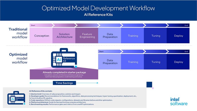 AI 레퍼런스 키트는 솔루션 개발에 걸리는 시간을 몇 주에서 며칠로 단축해 데이터 과학자와 개발자가 독점 환경의 한계를 극복하고 더 낮은 비용으로 더 빠르게 모델을 학습할 수 있도록 지원하며, oneAPI로 구동되는 AI 도구와 최적화돼 개방형 가속 컴퓨팅 애플리케이션 이식성을 극대화한다.