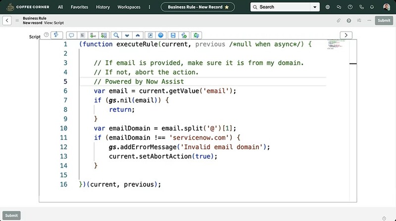 서비스나우의 텍스트 투 코드는 개발자가 원하는 코드 유형에 대한 일반 자연어 텍스트 설명을 작성할 수 있으며, 나우 플랫폼의 생성AI는 텍스트를 고품질 코드로 제안해 변환하고 일부 경우에는 검토나 편집, 구현할 수 있는 완성된 코드까지 제공한다. 텍스트 투 코드는 기업 내 모든 부서에서 원활한 코딩 환경을 구축해 빠른 개발과 생산성 향상을 실현하도록 지원한다.