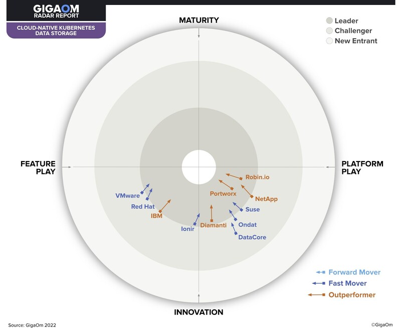 기가옴 레이더 클라우드 네이티브 쿠버네티스 스토리지 보고서는 퓨어스토리지 포트웍스(Portworx)에 대해 클라우드-네이티브 쿠버네티스 스토리지를 위한 가장 앞선 솔루션이자 엔터프라이즈용 클라우드 네이티브 쿠버네티스 스토리지의 표준이라고 평가했다.