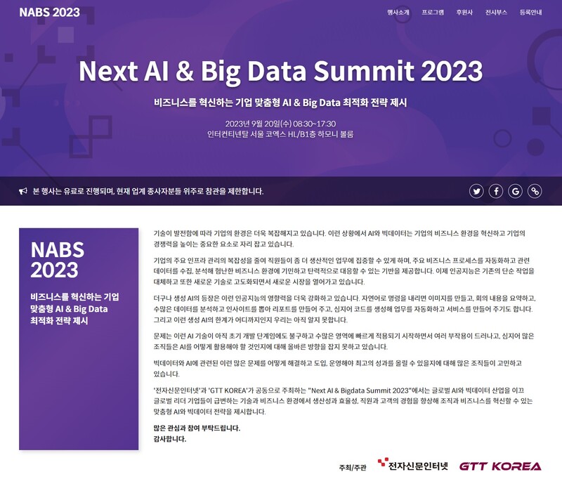 행사 관련 자세한 내용과 참관 신청은 관련 페이지(https://nabs.etnews.com)에서 확인할 수 있다.