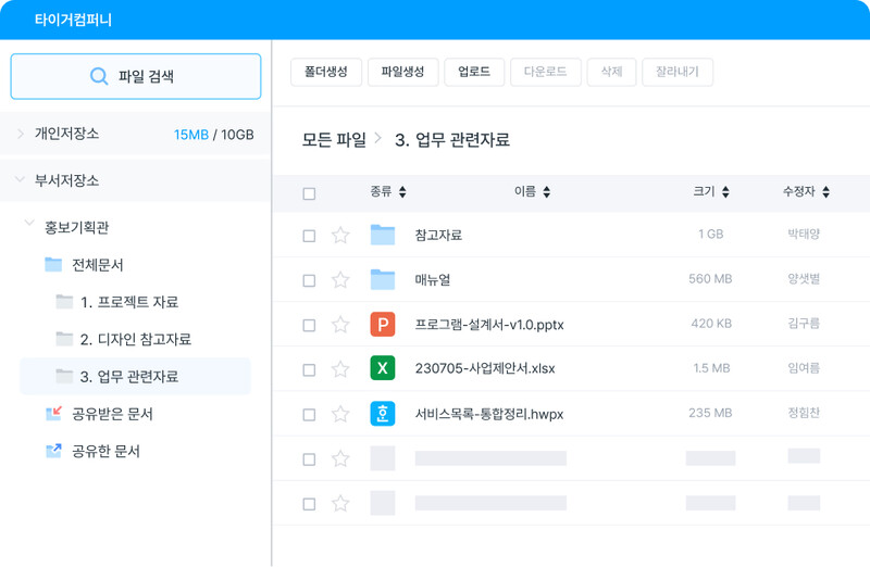 드라이브 역시 조직도 기반으로 부서별 저장 공간과 문서 협업이 가능한 옵션을 제공하며, 기업의 디지털 자산을 안전하게 보관할 수 있도록 강력한 보안을 지원한다. 이외에 타이거컴퍼니가 제공하는 기능 외에 다른 기업의 솔루션을 연동한 CRM, ERP, 블록체인 기반의 보안 로그인도 지원한다. 이런 방식으로 모든 기능을 티그리스 하나로 모아, 여러 번 로그인할 필요 없이 최소한의 작업 전환으로 업무에 더욱 집중하고, 생산성을 강화할 수 있도록 지원한다.