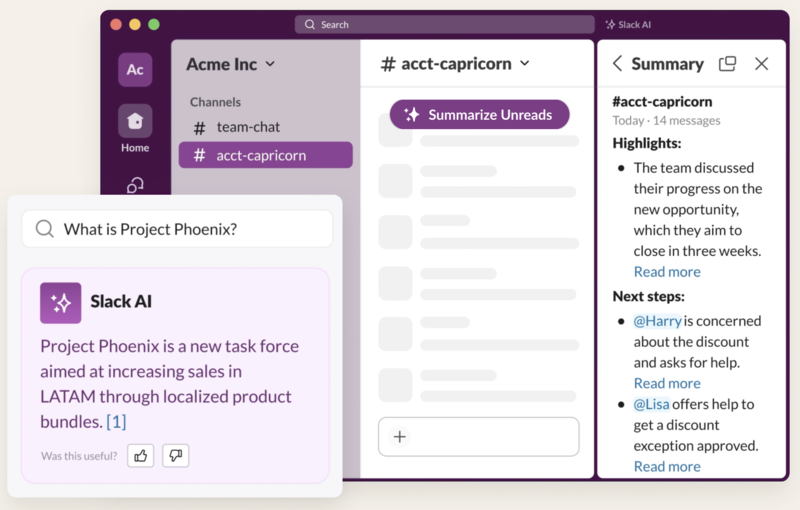 ’슬랙 리스트’는 프로젝트 매니지먼트와 진전 사항 트래킹, 승인 자동화를 지원하며 ‘슬랙 AI’는 슬랙 채널별 주요 내용 정리, 스레드 내용 요약, 질문에 대한 적절한 답변 제시로 업무를 효율화한다.