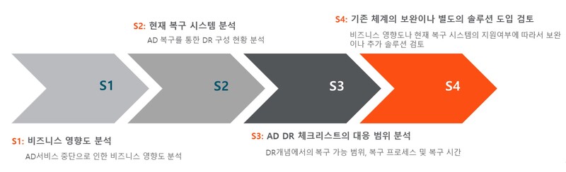 대부분의 기업들은 운영조직과 복구(백업)를 담당하는 조직이 구분돼 있어, AD와 같은 새로운 개념의 서비스 복구에 대해서는 충분한 협의가 필요하고 이를 기반으로 현재 위치를 분석하는 과정이 필요하다.