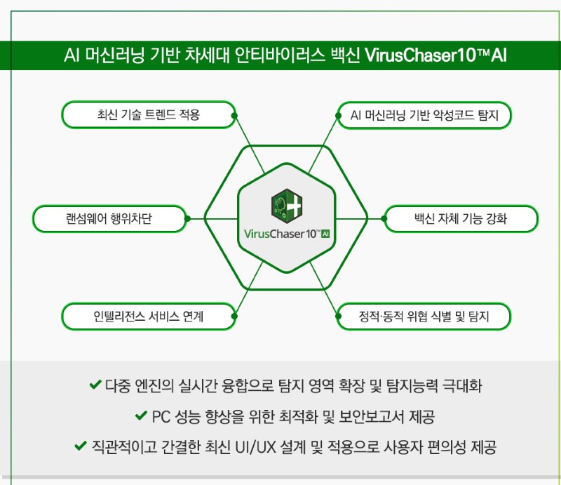SGA이피에스의 ‘VirusChaser 10 AI’는 기존 솔루션에 추가적으로 알려지지 않은 악성코드를 탐지하는 자체 개발된 AI 머신러닝 기반의 악성코드 탐지 엔진을 탑재해 탐지 능력을 강화한 솔루션이다. ‘VirusChaser 10 AI’는 인증 부여 테스트(Certificate Test)와 다양성 테스트(Diversity Test)’로 이뤄진 이번 VB100 테스트에서 오탐율 0%, 탐지율 99.74%의 뛰어난 결과를 기록하며 ‘VB100 A+’ 등급을 획득하였다.