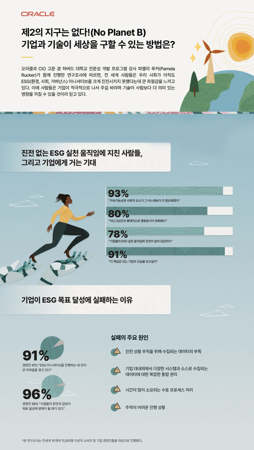 4월 22일 지구의날을 맞아 오라클에서 의미있는 최신 연구 보고서를 발표했다. 오라클과 CIO 고문 겸 하버드 대학교 전문성 개발 프로그램 강사 파멜라 루커(Pamela Rucker)는 “전 세계 많은 이들이 지속가능성과 사회적 활동의 진전을 위해 기업이 더욱 나서서 실천하기를 바라고 있다”고 분석했다.