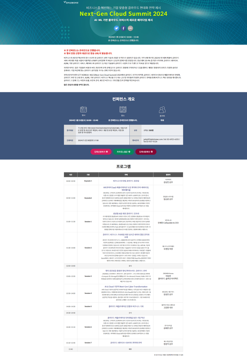 - “AI시대의 컴퓨팅인프라·데이터·애플리케이션·보안을 위한 클라우드 활용 전략” 무료 온라인 컨퍼런스 1월 31일 개최