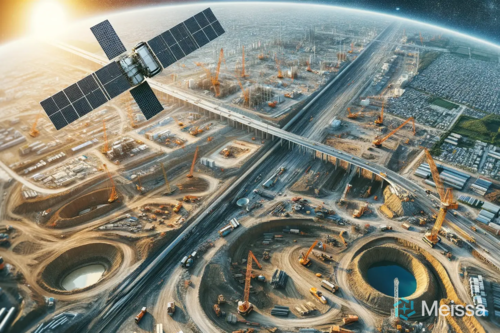 메이사 위성영상 솔루션은 건설 드론 플랫폼 기술을 기반으로, 위성영상을 통해 공정 모니터링과 IoT 데이터를 활용한 실시간 안전관리 및 협업 등을 수행한다.